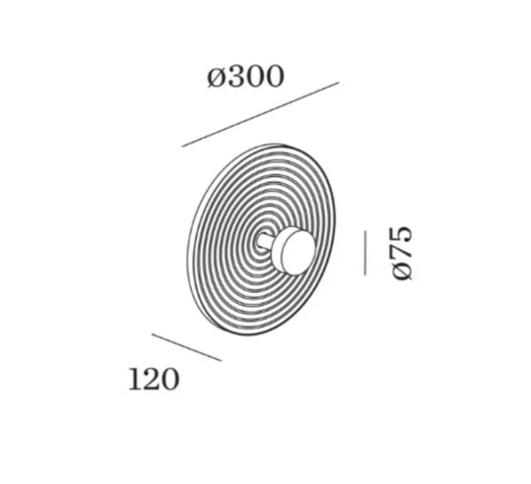 Wever&Ducré poursuit sa quête de rondeur en proposant un trio d’appliques à l’inspiration japonisante. L’applique Tapis 1.0 est composée d’un disque en plâtre strié, surmonté d’un cercle noir de diamètre plus petit, derrière lequel se dissimule la source lumineuse. Les stries sur la surface du disque permettent de donner du relief au flux lumineux. La diffusion de la lumière forme des halos consécutifs qui font penser à un Gong.