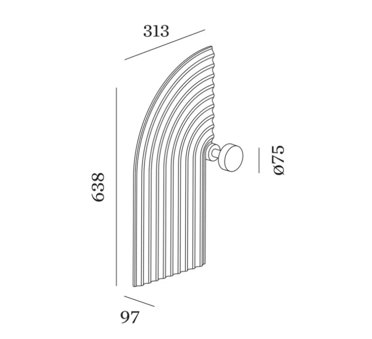 Le luminaire mesure 31,3 cm de long et 63,8 cm de haut, tandis que le cache de la source mesure 7,5 cm de diamètre.