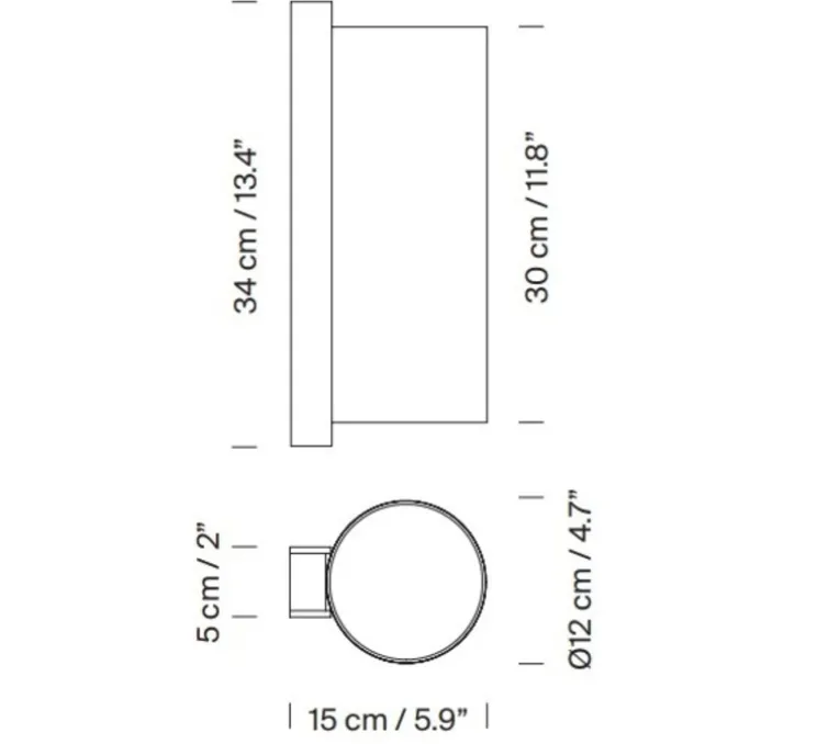 L’applique mesure 12 cm de diamètre pour 34 cm de hauteur. La source lumineuse 2700K, 470lm, 4,5W est fournie.