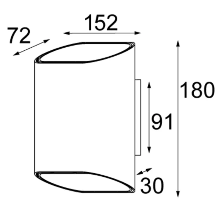 La hauteur, la longueur et la profondeur de l’Applique Trapz sont 18 cm, 15.2 cm et 7.2 cm. Trapz pèse 1.2 kg. Les deux sources de lumière sont incluses (2x LED 230V 4.3W).