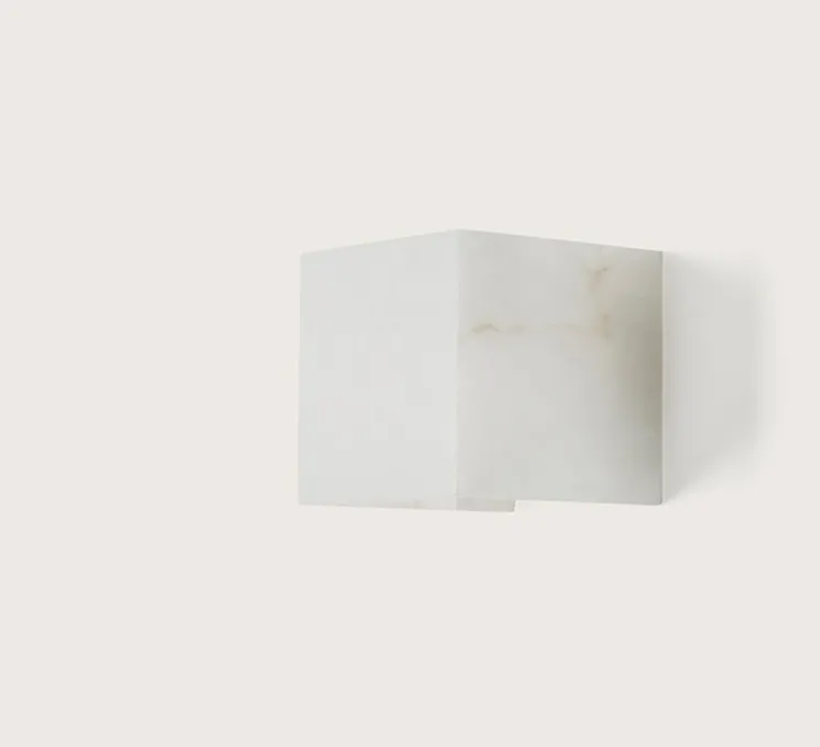 Le contraste entre le métal poli et l’albâtre, mat et légèrement translucide, donne un rendu lumineux raffiné où la lumière G9 incluse est adoucie par la pierre pour un effet enveloppant.