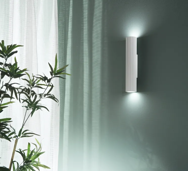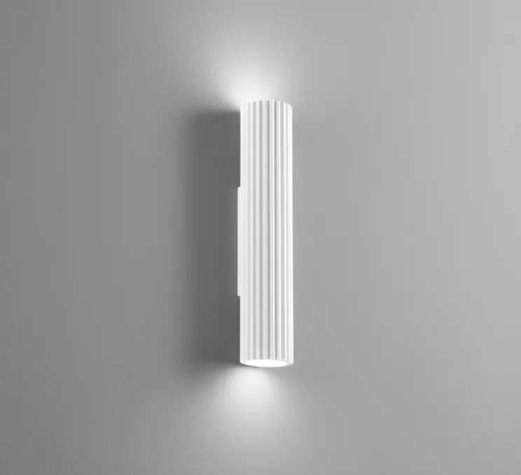 L’applique en plâtre Elisa de forme cylindrique habille vos murs avec esthétisme. Son design minimaliste, avec sa surface plissée, souligne son aspect contemporain et fonctionnel. Elle est idéale pour s’intégrer harmonieusement dans tout type d’espace. Le luminaire émet une lumière indirecte vers le haut et directe vers le bas en fonction de son orientation.