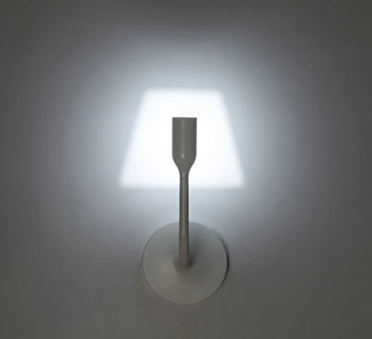 Cette applique blanche satinée en aluminium est équipée d’une source lumineuse LED qui projette vers le mur de votre choix un abat-jour. Une véritable illusion se crée lorsque l’abat-jour lumineux apparait sur le mur.