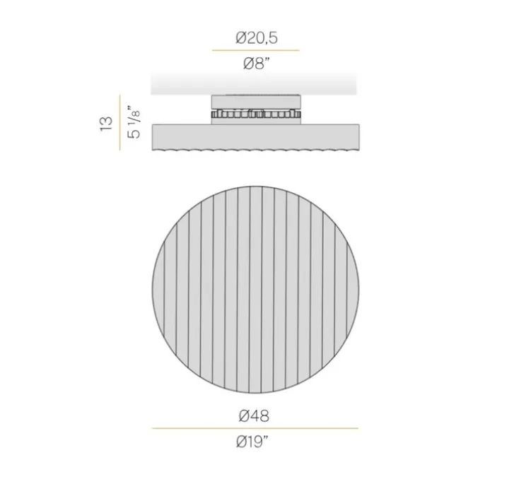 L’applique ou plafonnier Côte mesure 48cm de diamètre et 13cm de hauteur.