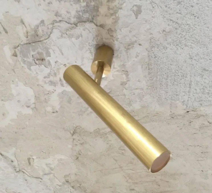 Ce luminaire en laiton dévoile une forme tubulaire apportant modernité et élégance à votre intérieur. Il est à la fois utilisable en plafonnier ou en applique murale. Son bras peut être orienté jusqu’à 180°.