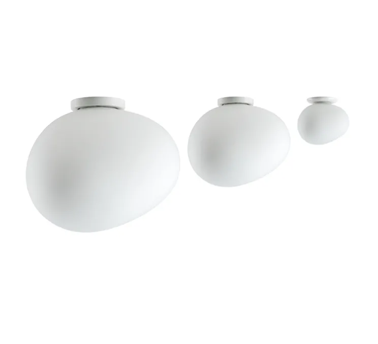 Gregg est composée d’un abat-jour en forme de galet blanc en verre blanc soufflé et satiné à l’acide et d’un socle en métal verni. Inspiré de la forme douce et organique de galets polis, Gregg se prête idéalement à la création d’ambiances magiques et poétiques dans tous les espaces, que ce soit un salon, une entrée ou une chambre.