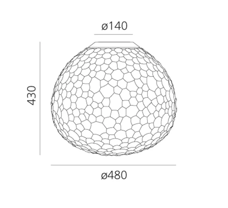 Le luminaire Meteorite se compose d’une base de fixation et d’un abat-jour à la forme organique texturée. Meteorite « naît de la recherche d’une nouvelle sensibilité, un nouveau langage expressif pour les lampes en verre soufflé. Le point de départ était l’envie d’utiliser le verre vénitien « battu », pour un effet « broyé » et pour le charme de l’impression d’ « inachevé » que donne un tel procédé au verre. Artemide a conçu pour cela une technique de production bien spécifique, permettant d’obtenir une profondeur impressionnante de la lumière de cet objet éclairant et faire que cette beauté soit accessible, démocratisée.