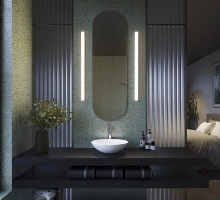 Le luminaire Mirbi est composé d’une base de fixation rectangulaire blanche et d’un diffuseur opalin de même forme. Discret et minimaliste, Mirbi s’installe dans chaque espace, notamment les pièces humides telles que la salle de bain et la salle d’eau.
