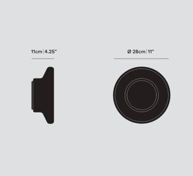 Cette applique/plafonnier est équipée d’un module LED intégré à éclairage diffus 360°, avec une température de couleur de 2700K (CCT) et un excellent rendu des couleurs (IRC >90). Le réflecteur est fixe, la lumière est dimmable (ELV), et la profondeur totale du luminaire est de 11 cm pour un diamètre de 28 cm.