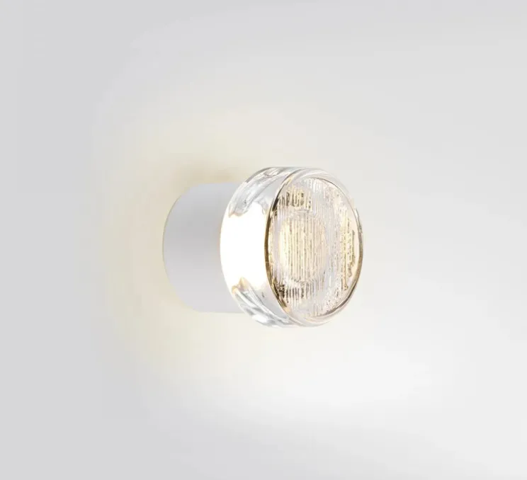 Son design évoque un bloc de glace sculpté : un diffuseur circulaire en verre pressé, texturé et transparent, monté sur une base discrète blanche. Son esthétique graphique et organique convient aussi bien aux murs qu’aux plafonds, dans une salle de bain, une cuisine, une entrée ou sur une terrasse. Disponible en trois diamètres – 8,5 cm, 14 cm et 17 cm – Roc Mini s’intègre avec élégance dans tous les environnements.