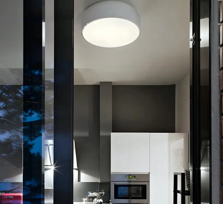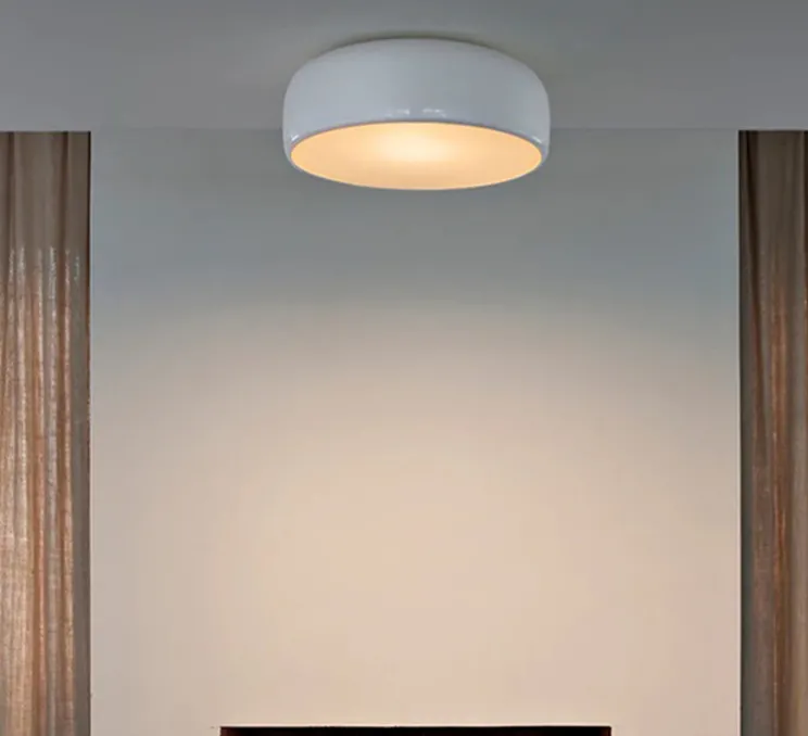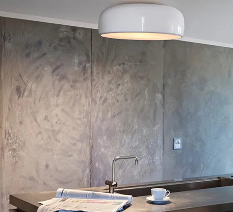 Le luminaire Smithfield est composé d’une pièce de fixation en acier et d’un abat-jour circulaire fait d’un corps en aluminium et d’un diffuseur moulé par injection en méthacrylate opalin. Le minimaliste et les courbes douces de Smithfield se fondent dans chaque espacé intérieur, que ce soit une cuisine, un salon ou un couloir.