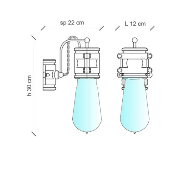 Le luminaire mesure 26 cm de hauteur pour 12 cm de diamètre. La source lumineuse n’est pas fournie. Nous recommandons une ampoule E27, 53W max.