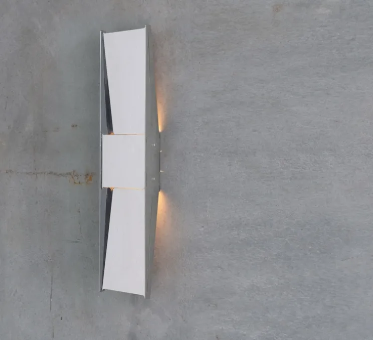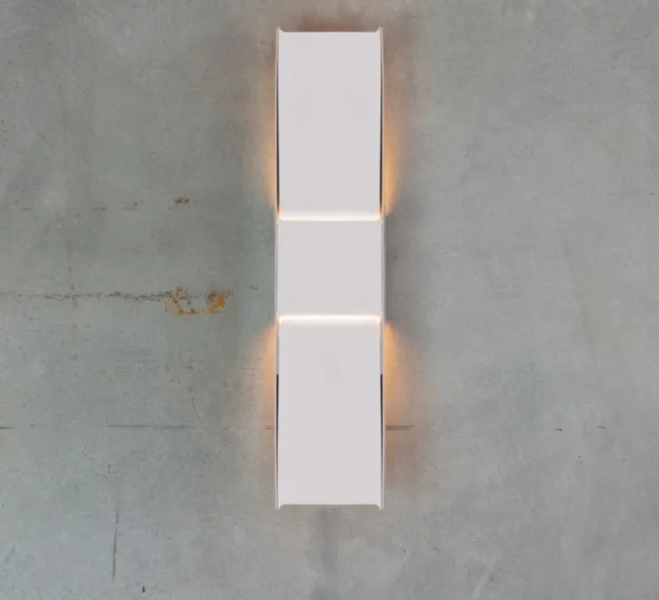 Dans le respect des grands monuments brutalistes, Vector révèle un design industriel grâce aux légères ouvertures sur le plan architectural qui joue sur les vides et les volumes. Chaque applique rectiligne peut être fixée au mur dans une configuration verticale ou horizontale, exposant ainsi sa forme franche et minimaliste.