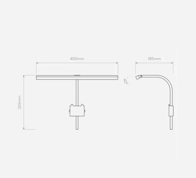 Le luminaire mesure 26,5cm de hauteur, 40cm de largeur et 18,3cm de profondeur. La bande LED est incluse avec une puissance maximale de 4.5W, une température de couleurs de 2700K et une intensité lumineuse de 127lm. Driver non requis et dimmable. Le câble électrique mesure 1m.