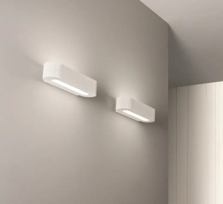 L’applique murale Camille se caractérise par sa forme cylindrique en plâtre et son effet strié. Avec une hauteur de 7cm et 35m de longueur, elle garantit un effet élégant et graphique réussi. L’applique est composée de deux sorties lumineuses, une en haut avec un diffuseur en acrylique et une en bas avec un diffuseur en verre. Ces deux sorties lumineuses vous permettent de créer un éclairage à la fois direct et indirect.