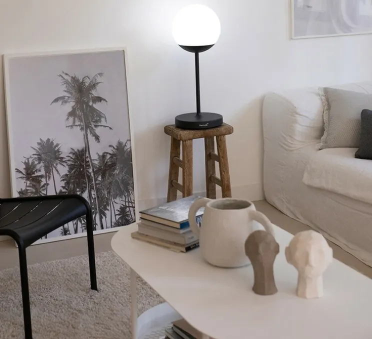 Nous vous présentons la Lampe à poser d’extérieur H63 carbone, de la collection Mooon! par Fermob.