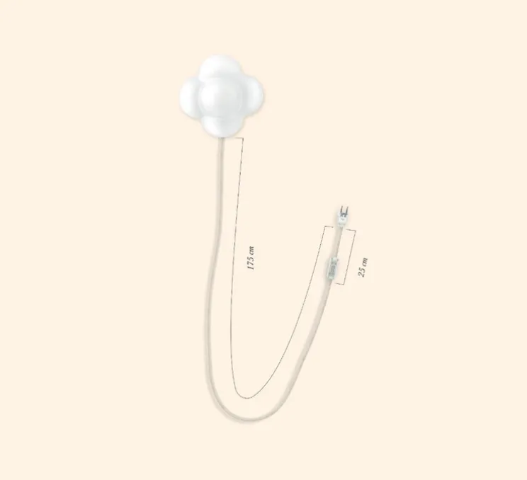 Ce luminaire est équipé d’une source lumineuse incluse LED G9 avec un éclairage diffus. Elle possède un câble blanc de 1,7 mètre.
