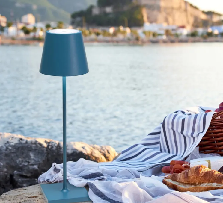 Voici la baladeuse rechargeable Poldina de couleur bleu du designer Federico De Majo pour la maison italienne Zafferano !
