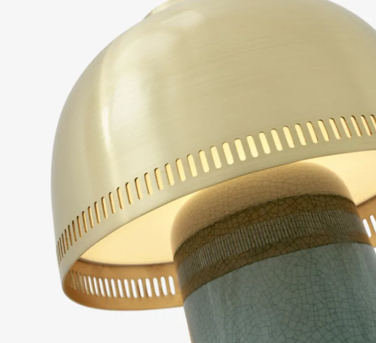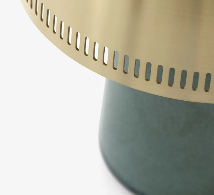 Découvrez la lampe à poser Raku, finition bleu vert/laiton, imaginée par Sebastian Herkner pour la maison danoise Andtradition.
