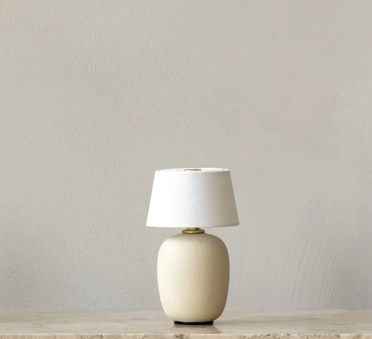 La baladeuse est une version miniature de leur célèbre lampe à poser du même nom, qui s’inspire des maisons d’enfance remplies de trésors façonnés par la main de l’homme. Petit et confortable, ce modèle réduit apporte un sentiment d’intimité sur les tables, remplaçant les bougies grâce à sa lumière chaleureuse et ambiante. Elle présente un joli contraste entre la céramique brute et le lin.