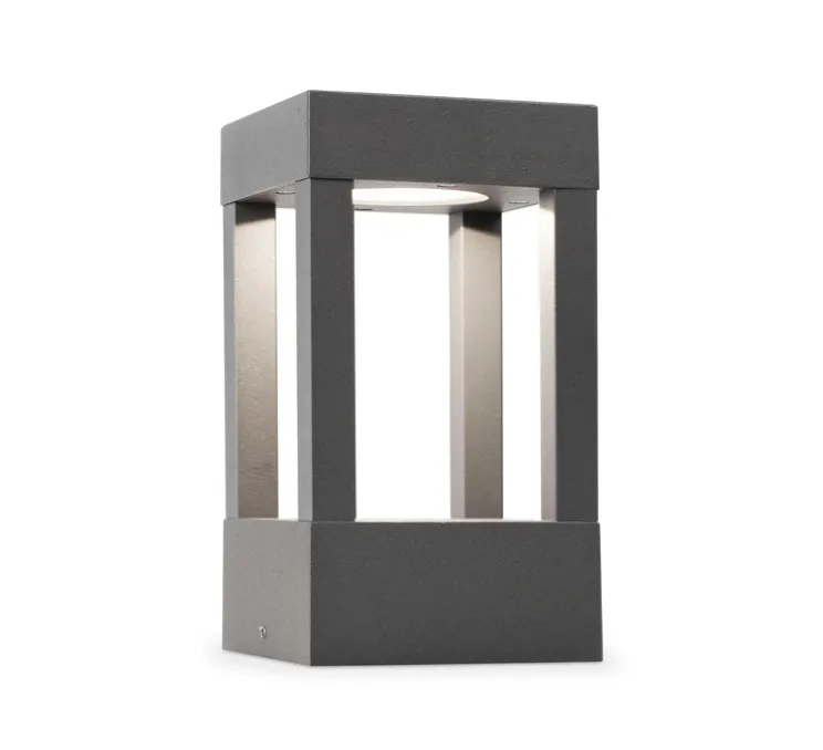 Cette borne d’extérieur est fabriquée en aluminium avec un verre transparent.