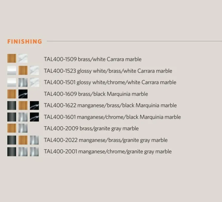 - blanc brillant, laiton, marbre noir
