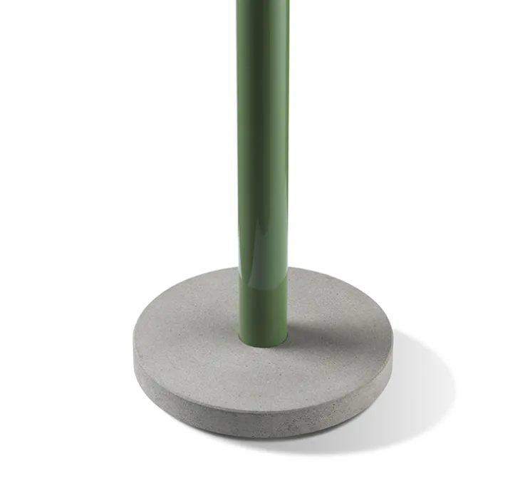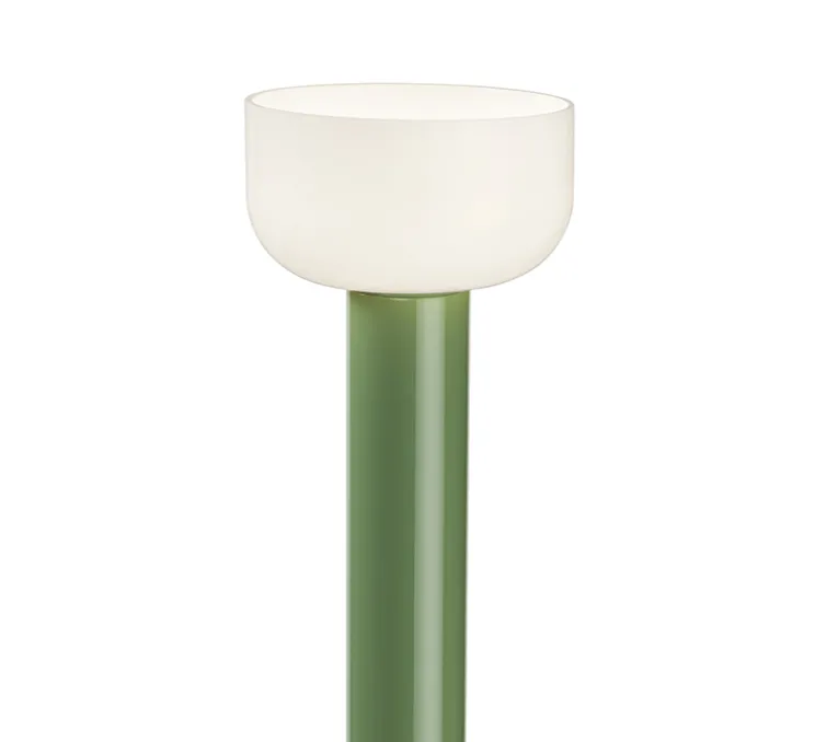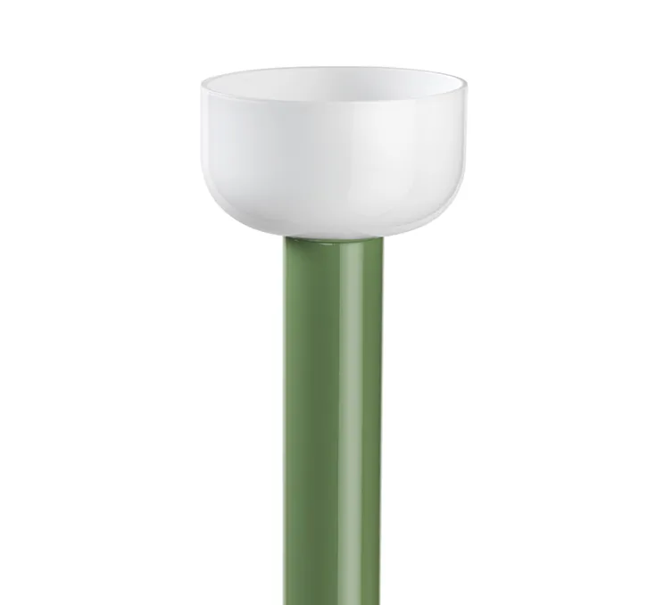 Bellhop est composé d’une base circulaire en ciment, d’une longue tige en aluminium laqué et d’un réflecteur semi-sphérique en verre soufflé blanc et gris brillant opalin. Bellhop a été imaginée lors d’un projet pour le London Design Museum avec l’idée de recréer l’ambiance et la flexibilité d’une bougie. Après la baladeuse, Bellhop se décline en lampadaire et s’intègre dans chaque intérieur, que ce soit dans un bureau, une pièce de vie ou une chambre.