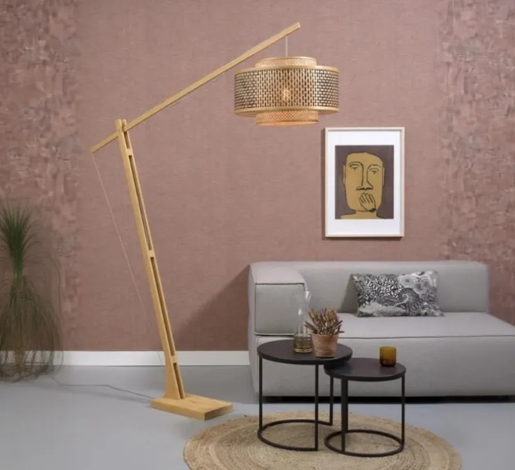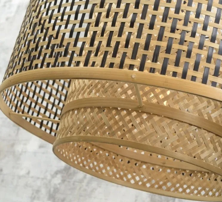 Ce lampadaire allie élégance et matériaux bruts pour une ambiance chaleureuse. Sa structure en bambou naturel et noir lui confère une esthétique raffinée, parfaite pour un intérieur contemporain ou bohème.