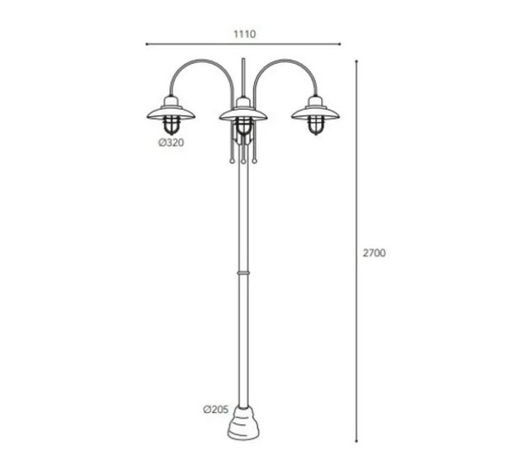 Le lampadaire mesure 2,70m de haut, 1,11 m de profondeur et 32 cm de diamètre pour l’abat-jour. Le diamètre du pied mesure 20,5cm.