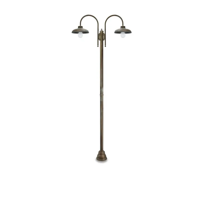 Il peut également être utilisé dans des environnements très agressifs et dans des conditions atmosphériques difficiles comme les zones côtières ou la montagne. La couleur cuivre et la composition en laiton vieilli de ce lampadaire en font un luminaire robuste et simple au design unique.