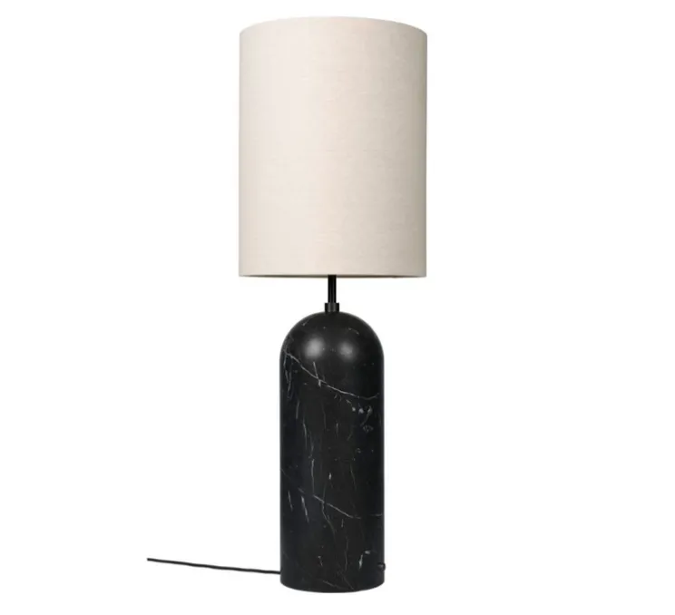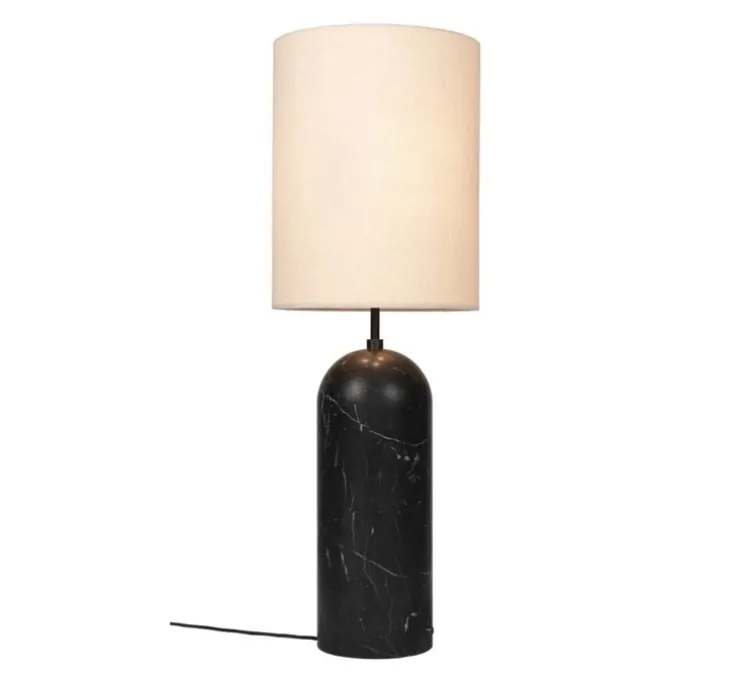 Découvrez le lampadaire Gravity XL marbre noir et abat-jour en toile blanche, signé de Space Copenhagen, pour la maison d’édition Gubi.