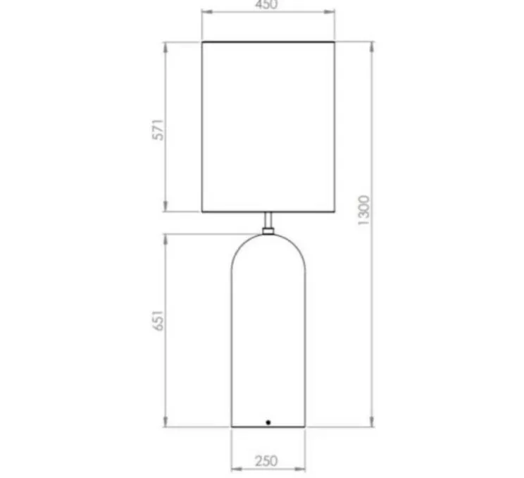 Ce lampadaire mesure 130cm de hauteur. L’abat-jour a un diamètre de 45cm pour 57,1cm de hauteur. La base un diamètre de 25cm pour 65,1cm de hauteur. Le câble noir mesure 200cm.