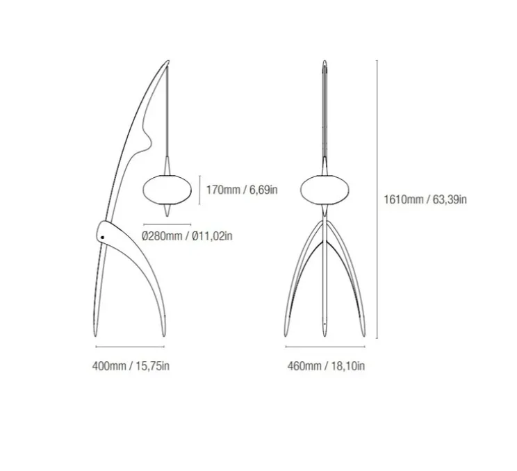 La lampadaire mesure 161cm de hauteur.
