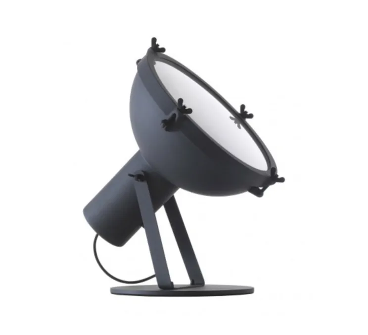 Projecteur 365 est un lampadaire d’intérieur fabriqué en aluminium verni de couleur bleu nuit, blanc sablé ou moka. Le diffuseur bombé est en verre et sablé à l’intérieur. Les écrous et la visserie sont chromés en noir. La hauteur est de 38cm et le diamètre du diffuseur de 37cm. L’interrupteur se trouve sur le câble de 2,9m. La source lumineuse n’est pas fournie. Nous vous conseillons une ampoule LED E27, 150W.
