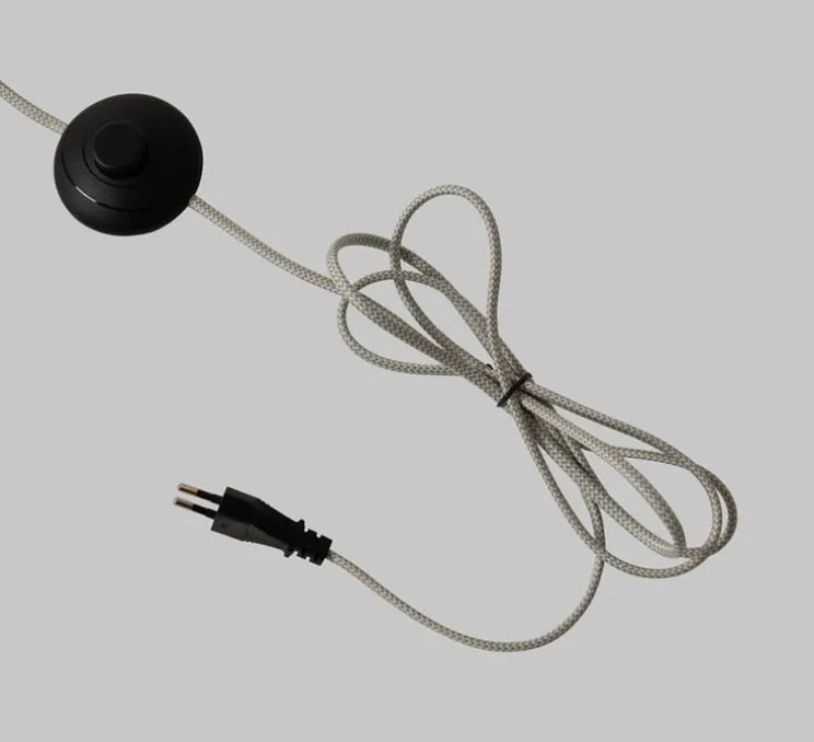 Le Tivoli fonctionne avec une ampoule E14 (non incluse) jusqu’à 40 W et diffuse une lumière à 360°. Son réflecteur fixe délivre un éclairage homogène et non dimmable. Il mesure 163 cm de hauteur et 42 cm de largeur, avec une base de Ø16 x H2,5 cm. Le câble en tissu marron de 2 m intègre un interrupteur.