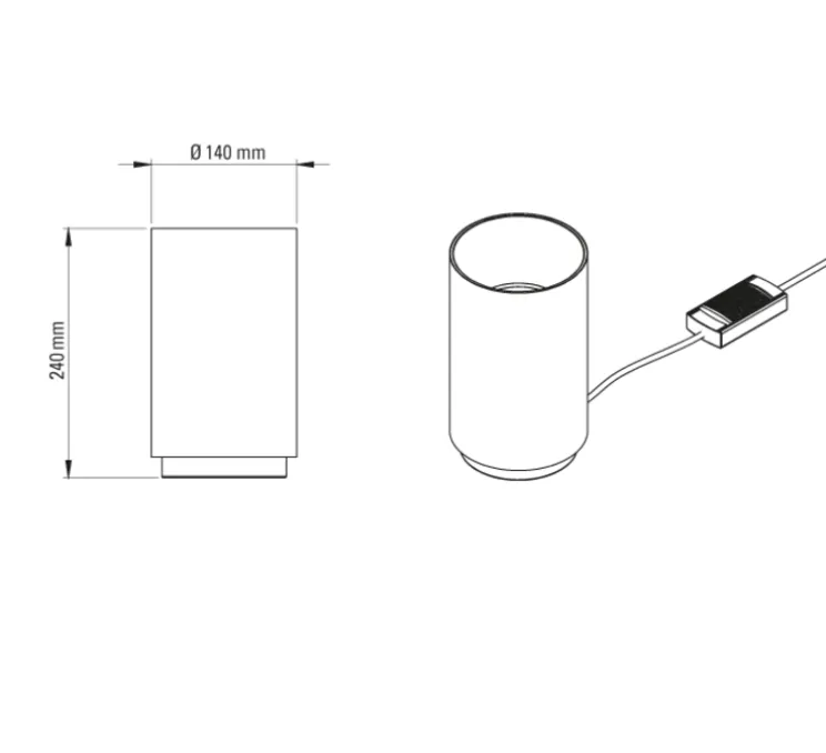 Ce luminaire mesure 24cm de hauteur et a un diamètre de 14cm. Le câble mesure 2 mètre de long est dispose d’un variateur.
