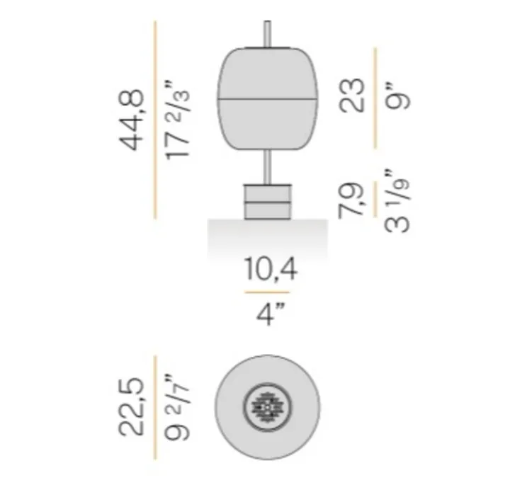 La lampe mesure 22,5cm de diamètre et 44,8cm de hauteur.