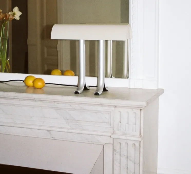 Toute en courbe, cette lampe se compose d’un abat-jour incurvé et brillant et de pieds courbés à leur base. Caractéristique du style du designer, ce luminaire est possède un design sobre pour mettre en avant sa fonction et rendre son utilisation intuitive. Dans cet esprit, Anagram reprend les codes essentiels d’une lampe en proposant une base, un abat-jour, un éclairage par ampoule et un interrupteur on/off. L’abat-jour offre un flux vers le bas qui est parfait pour un bureau ou pour ajouter une source supplémentaire de lumière sur la commode d’un salon ou d’une chambre.