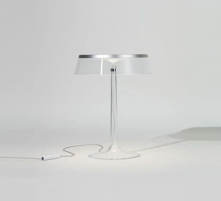 Découvrez la lampe à poser Bon Jour en finition chrome, designée par Philippe Starck pour la maison Flos.