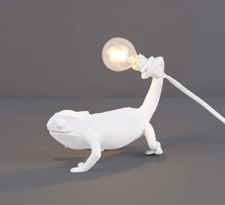Chameleon Lamp Still est une lampe à poser à la forme d’un caméléon, tenant dans sa queue enroulée une ampoule et son câble. Figé dans sa marche, Chameleon Lamp Still est un luminaire décoratif, parfait pour tous les intérieurs qui ne craignent pas ses yeux inquisiteurs.