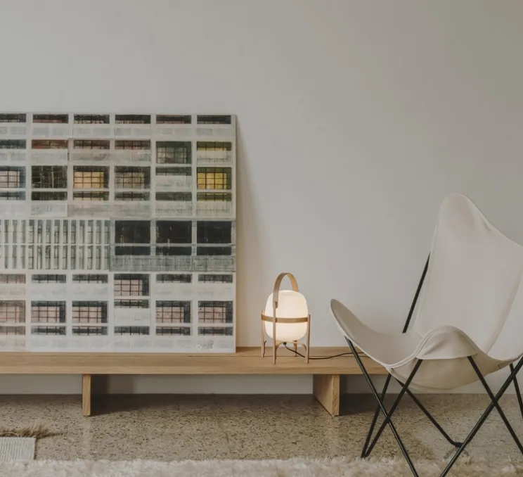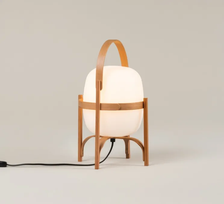 Cestita est la déclinaison de l’iconique Cesta dans une version aux dimensions plus passe-partout. Dans les années 60, le designer découvre un globe opale abandonné devant une verrerie, c’est ainsi que débuta l’histoire de la lampe Cesta. Évoquant par son nom espagnol, « panier », sa fonction originelle, la Cesta a été conçue pour être manipulée avec précaution. Inspirée par les lanternes traditionnelles éclairant les habitations le long de la côte, les propriétés rurales et les terrasses ouvertes, la Cesta est devenue l’une des lampes les plus emblématiques de l’œuvre de Miguel Milá. Dotée d’un abat-jour en verre opale soutenu par une structure en bois finement travaillée à la main selon des techniques ancestrales de pliage, cette lampe allie élégance et fonctionnalité et reste contemporaine malgré sa singularité.