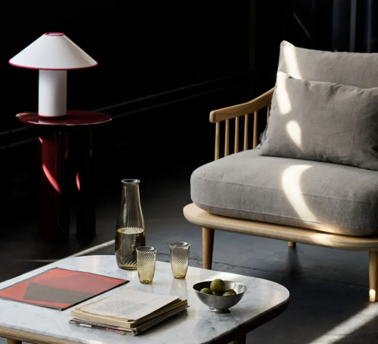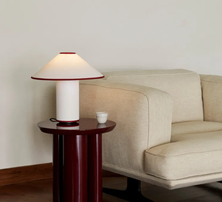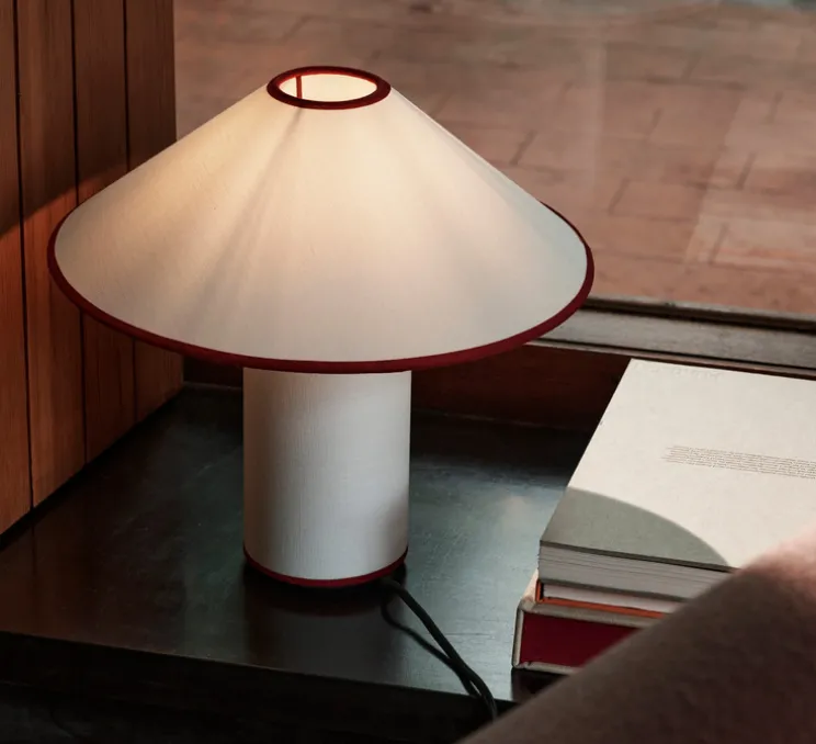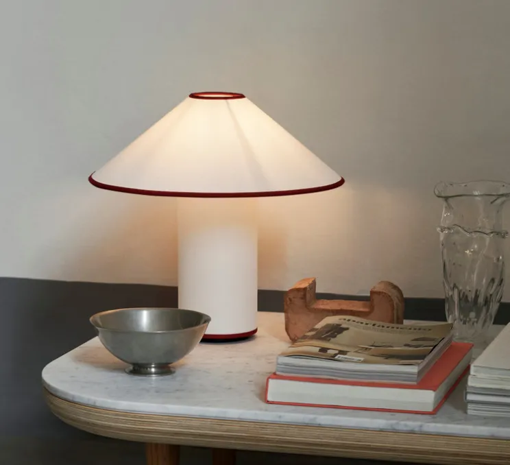 Découvrez la lampe à poser Colette ATD6, finition blanc et merlot, imaginée par le studio de la maison danoise Andtradition.