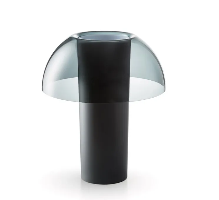 Son cylindre translucide tente d’emprisonner la lumière qui est entièrement libre seulement en correspondance de l’hémisphère qui, avec sa transparence, donne légèreté à l’ensemble de la lampe.