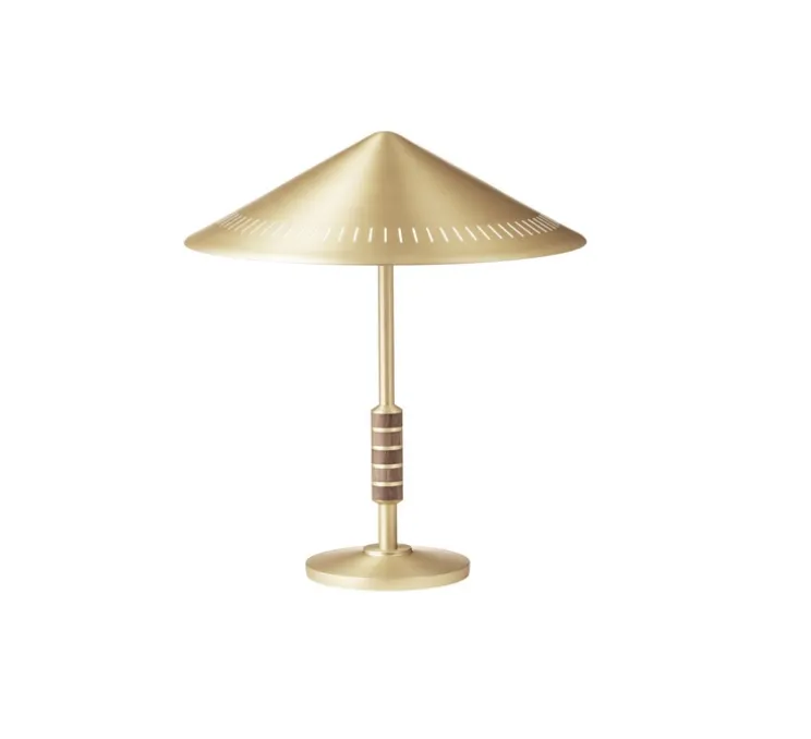 L’abat-jour, la tige et le base sont tous fabriqués en laiton mat, ce qui confère à la lampe une sensation de solidité luxueuse. La magnifique poignée décorative est fabriquée en noyer avec des incrustations de laiton. La lampe Governor émet une lumière indirecte fonctionnelle et non éblouissante grâce à ses deux sources lumineuses.