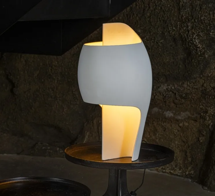 Fidèle aux jeux scéniques lumineux, le designer nous montre une fois encore son talent pour donner vie à la lumière. Douceur et intimité sont les principales caractéristiques de cette lampe en matière minérale.