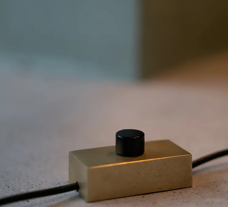 Iota possède un interrupteur doré à la fois bouton On/Off et interrupteur rotatif offre un contrôle précis de l’intensité lumineuse, tandis que le câble noir discret simplifie l’installation. L’interrupteur apparaît comme un élement essentiel de la lampe à poser par sa fonctionnalité et ses caractéristiques esthétiques. Il rappelle en effet le côté luxueux de ce modèle en faisant un clin d’oeil au socle et au diffuseur, tous trois dorés.