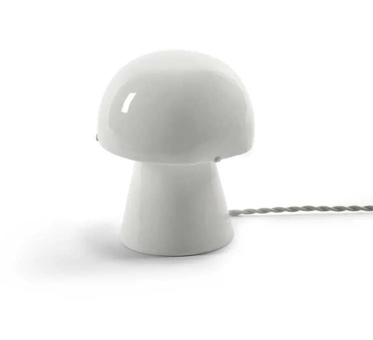 Pour concevoir la lampe de table Joe, la talentueuse céramiste Anita Le Grelle s’est inspirée des courbes organiques des champignons des années 60. Son design à la fois nostalgique et naïf trouve parfaitement sa place dans les chambres d’enfant, mais son charme ne se limite pas à cet usage. Dotée d’un socle et d’un abat-jour qui abritent chacun une ampoule, cette lampe diffuse une lumière magnifique à travers sa porcelaine bone china translucide.