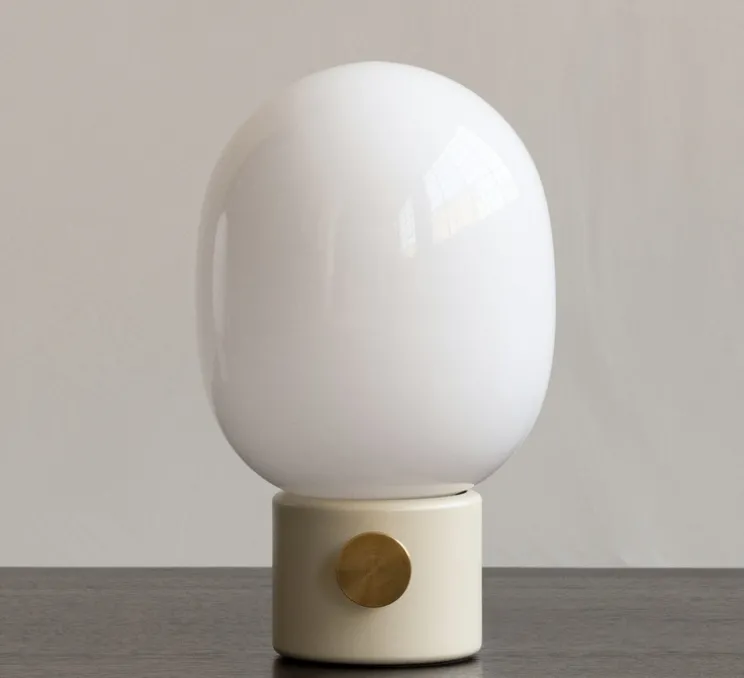 Composée d’une base en acier blanc albâtre et d’un abat-jour en verre opalin soufflé à la bouche, la lampe de table JWDA possède aussi un variateur permettant de varier la lumière selon votre envie.