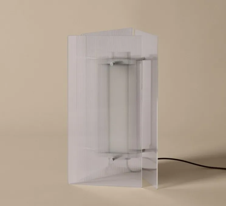 Oeste se distingue par un verre transparent cannelé, dont la texture joue avec la lumière pour diffuser un halo doux et évolutif. Sa silhouette conique élancée trouve naturellement sa place sur une table de chevet, un buffet ou une étagère. Son design simple mais expressif permet de l’intégrer aussi bien dans un intérieur épuré que dans une composition plus éclectique.