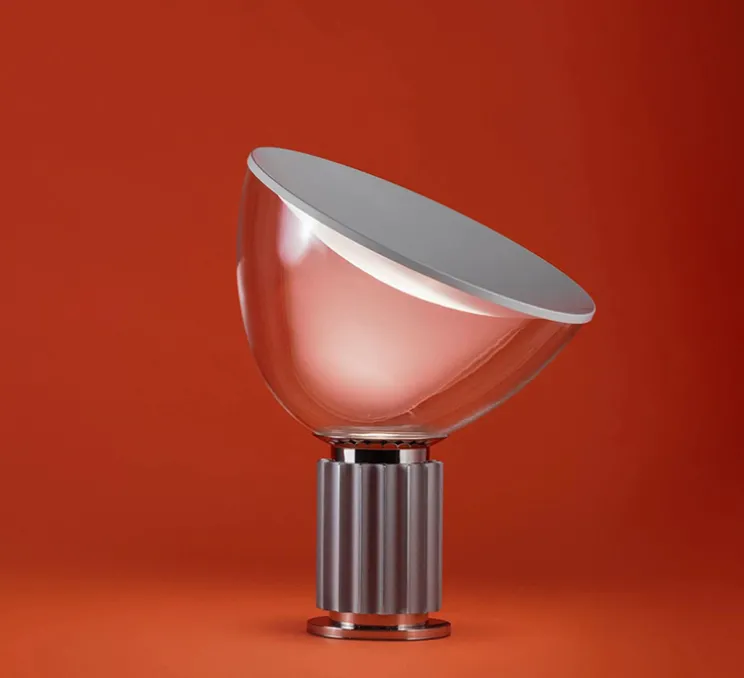 Taccia PMMA est une lampe à poser dessinée par les frères Castiglioni en 1962 pour Flos.